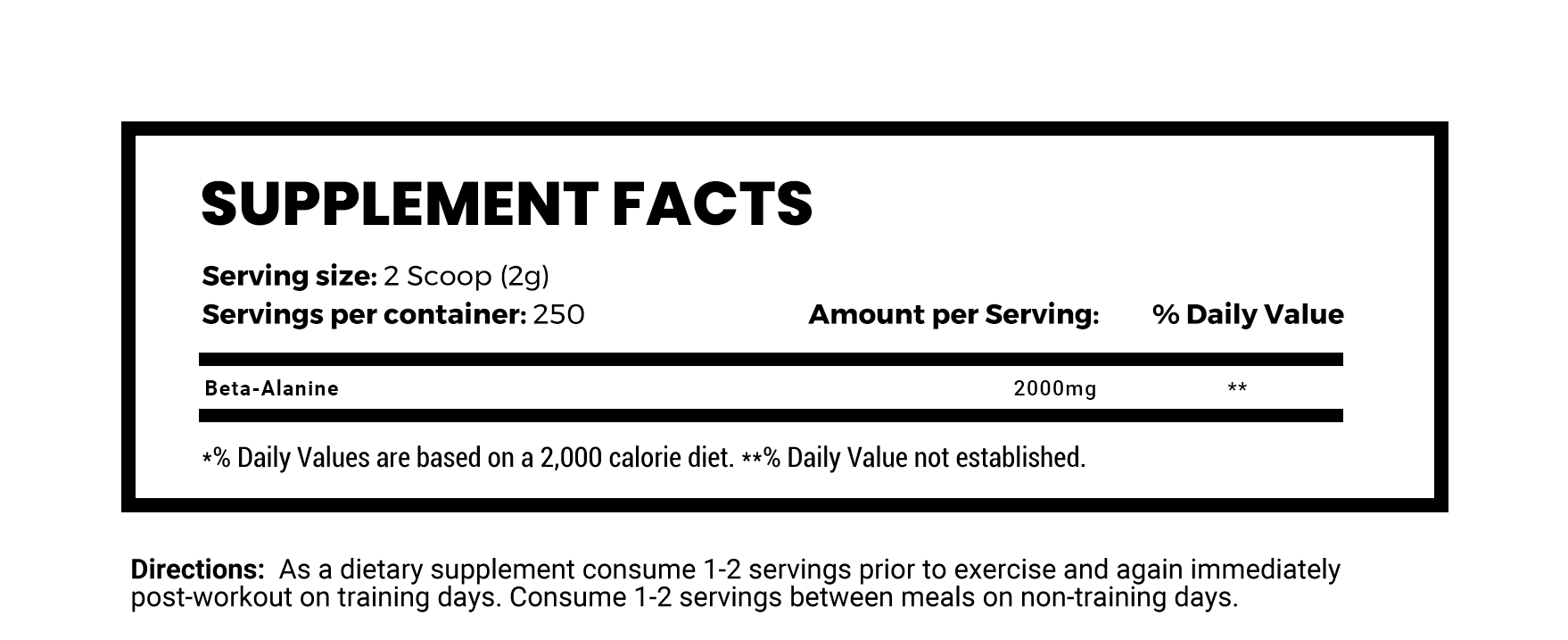 Beta-Alanine is a non-essential beta-amino acid that raises muscle carnosine levels to increase muscular output. Commonly known for the “tingle” feeling it provides upon consumption, Beta-Alanine is one of the most sought after ingredients for muscular endurance and lactic acid buffering through raising muscle carnosine levels.*